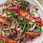 This easy popular Turkish salad called piyaz, or more accurately fasulye piayzi, is made with simple ingredients including white beans, tomatoes, onions, parsley and garlic. A light vinaigrette with fresh lemon juice and a good dash of sumac brings this satisfying white bean salad together. Ready in 10 minutes or less.