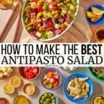 It’s no wonder everyone seemingly has their own antipasto board. And while many load theirs with tons of meat, my antipasto salad recipe takes a lighter touch. There’s just enough meat to allow the delicious marinated vegetables to shine, which is the perfect balance in my opinion. It’s a flavor party in every bite!