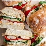 This chicken sandwich recipe is a total crowd-pleaser. That’s mostly thanks to the slightly sweet roasted red peppers, meaty marinated artichokes, and tangy olives. Each antipasto boasts its own unique flavor, but put them together and the combination is mouthwatering!