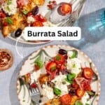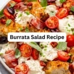 Ready in 10 minutes, this colorful summer stunner is much more than just a salad! With fresh and sun-dried tomatoes, basil, prosciutto, and crusty Italian bread, this burrata salad recipe is a little meal in its own right. It’s also the perfect start to an Italian-style dinner!