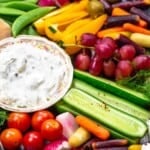 - Dip. For a veggie platter, I like to use a creamy dip like tzatziki, walnut spinach yogurt dip, or homemade farmer’s cheese. But if you have room on your board or platter, you can add one more dips such as hummus (or roasted red pepper hummus) or baba ganoush (the smoky eggplant dip makes a fun and unexpected addition). Turkish Tarator Sauce or Tahini Sauce are both deliciously creamy dairy-free options.