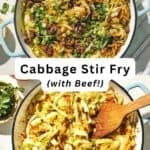 - It’s a true one-pan meal! Seasoned ground beef and caramelized cabbage cook in the same skillet, which means almost no cleanup.