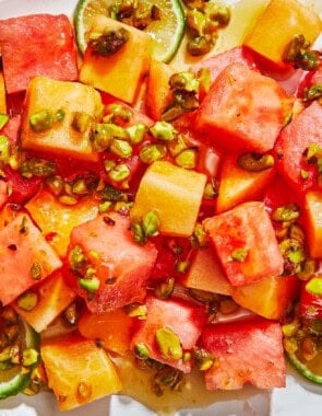 Watermelon Fruit Salad with Pistachios and Honey-Lime Syrup