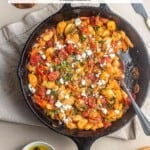 I like to finish this dish with a good drizzle of extra virgin olive oil and some crumbled creamy feta. Or, omit the feta if you want to keep it vegan.
