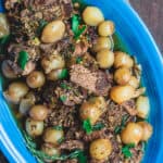 Flavorful, succulent, fall-apart tender boneless leg of lamb, seasoned Greek-style with loads of garlic, rosemary, oregano and citrus. Let your slow cooker do all the magic as this lamb leg cooks along with pearl onions in a special wine broth. Watch the how-to video toward the end of this post, grab all my tips and step-by-step below. (Don’t have a slow cooker? No worries! See braising instructions.)
