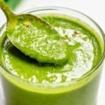 Once you blanch the basil, this salad dressing comes together in a matter of seconds in a food processor or blender!