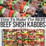 Learn how to make shish kabobs, also spelled “shish kebabs,” with this easy shish kabob recipe. A flavor-packed marinade made from basic pantry staples makes these steak kabobs unbelievably juicy and delicious–perfect for your summer BBQs!