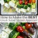 These easy Greek salad skewers turn a traditional recipe into a colorful party appetizer. Think of it as Greek salad on a stick, drizzled with a zesty vinaigrette!