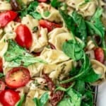 This spinach tortellini salad is one of my favorites because it’s quick and easy to assemble and the leftovers are perfect for lunch the next day! In this recipe, the delicious ricotta-filled pasta is combined with baby spinach, fresh herbs and vegetables, along with other Mediterranean favorites like mozzarella cheese, olives and sundried tomatoes.
