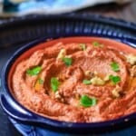 Muhmmara is a Middle Eastern walnut and roasted red pepper dip that’s all sorts of savory, sweet, slightly smoky, and just enough spicy! It is almost a cousin to Spanish romesco sauce. This muhammara recipe is easy to make, and I love serving it with warm pita as part of a Mezze platter, spread it on your sandwiches, or scoop it on top of grilled chicken or fish.