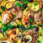 This easy Greek chicken and potatoes recipe is a family favorite! The secret is in the lemon-garlic marinade.