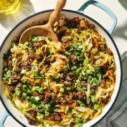 - It’s a true one-pan meal! Seasoned ground beef and caramelized cabbage cook in the same skillet, which means almost no cleanup.